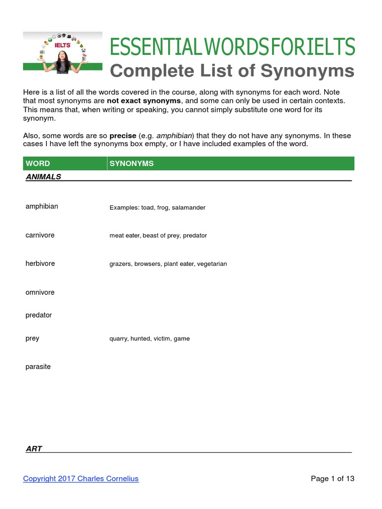 Essential Words For Ielts Complete List Of Synonyms Predation