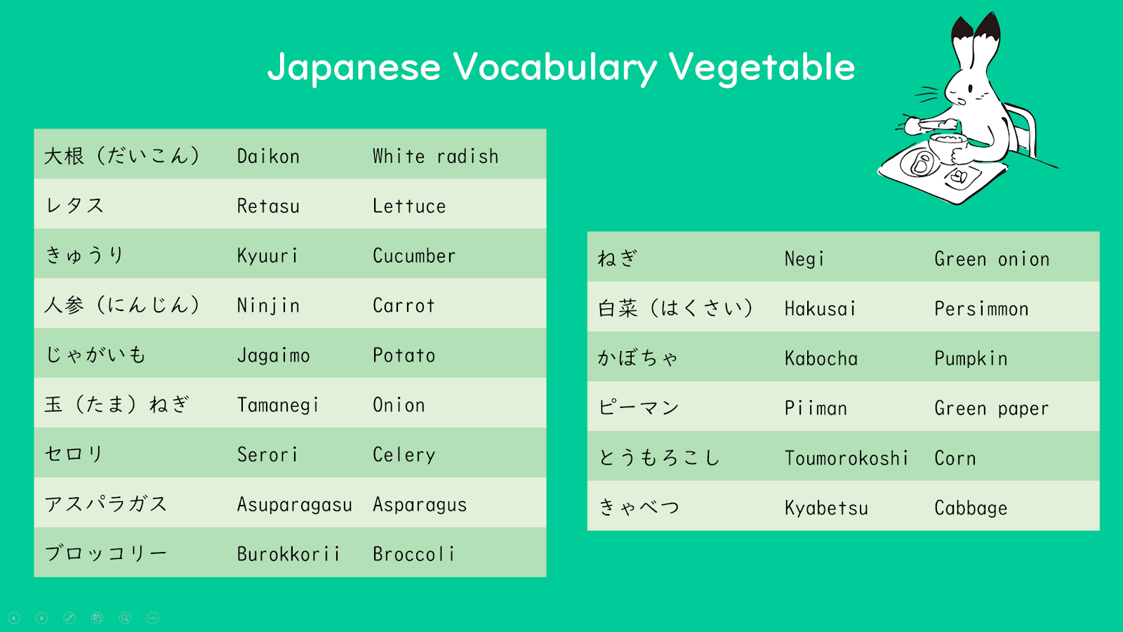 Learn Japanese Vocabulary Vegetables