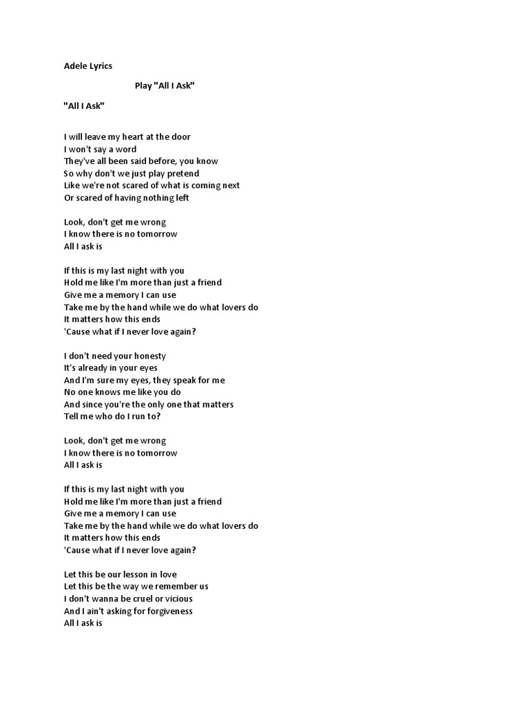 Adele All I Ask Lyrics