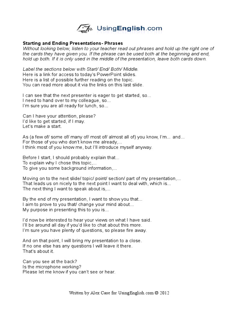 Business English Starting And Ending Presentations Phrases Pdf